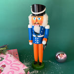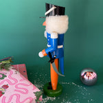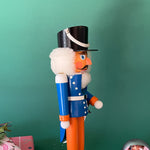 Unearthed at an antiques store in Germany by the Madcap gents, this wonderful vintage wood nutcracker boasts a moving mouth, heaps of hair, gorgeous coloring, braid work on the hat, and an attached sword. Watch out, Mr. Mouse King! The perfect Christmas dinner centerpiece.